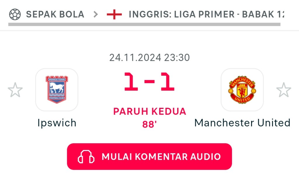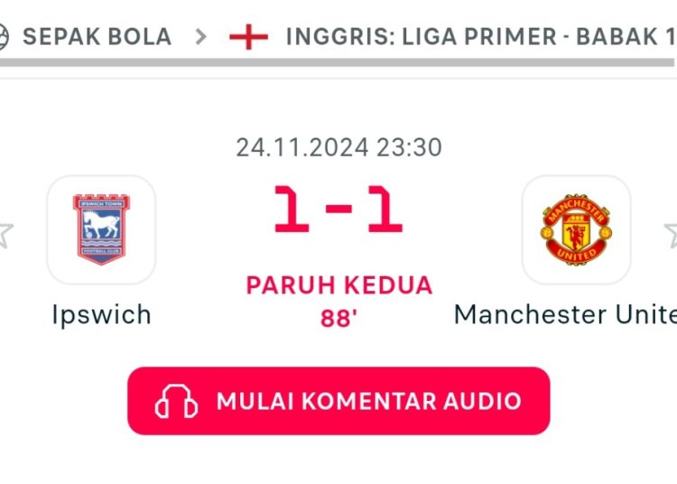 Merapah.com — Dalam sebuah pertandingan yang penuh kejutan, Manchester United harus puas berbagi poin dengan Ipswich Town setelah bermain imbang 1-1 di babak pertama.