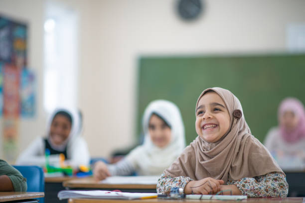 Nampak keceriaan anak perempuan yang sedang belajar.