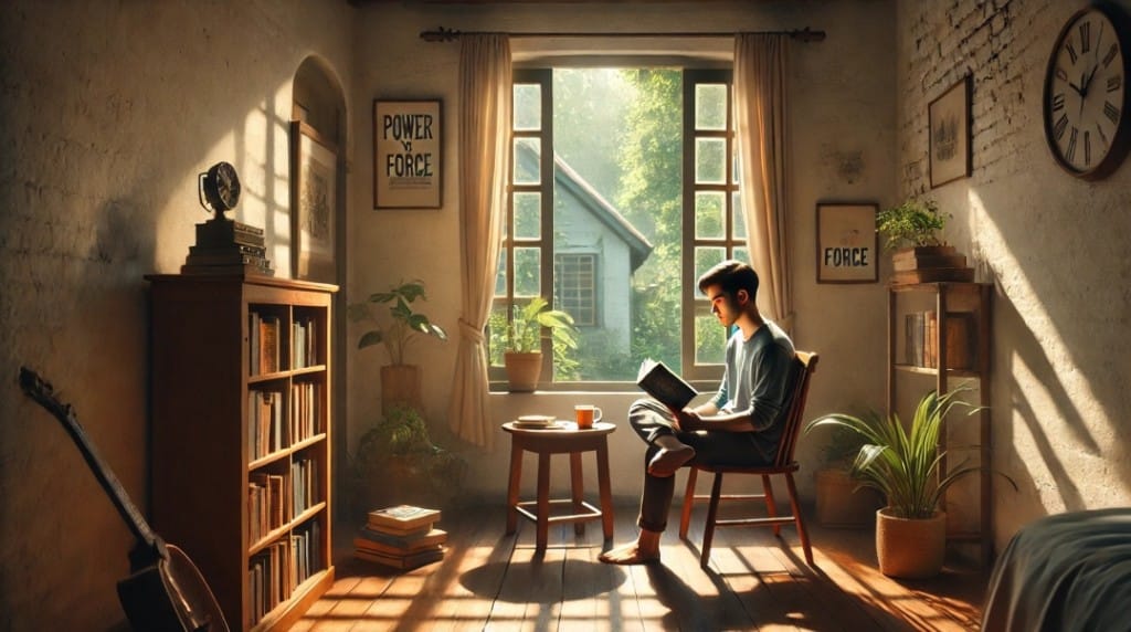 Saya duduk di lantai, menarik napas panjang, dan memutuskan untuk meditasi. Udara pagi yang sejuk terasa menyegarkan. Lima menit kemudian, pikiran saya mulai tenang. Usai meditasi, seperti biasa, saya mencari buku yang sedang saya baca: Power vs Force. Sebagian besar sudah saya lahap sebelumnya, tetapi hari ini saya bertekad melanjutkannya walaupun tanpa jejak.