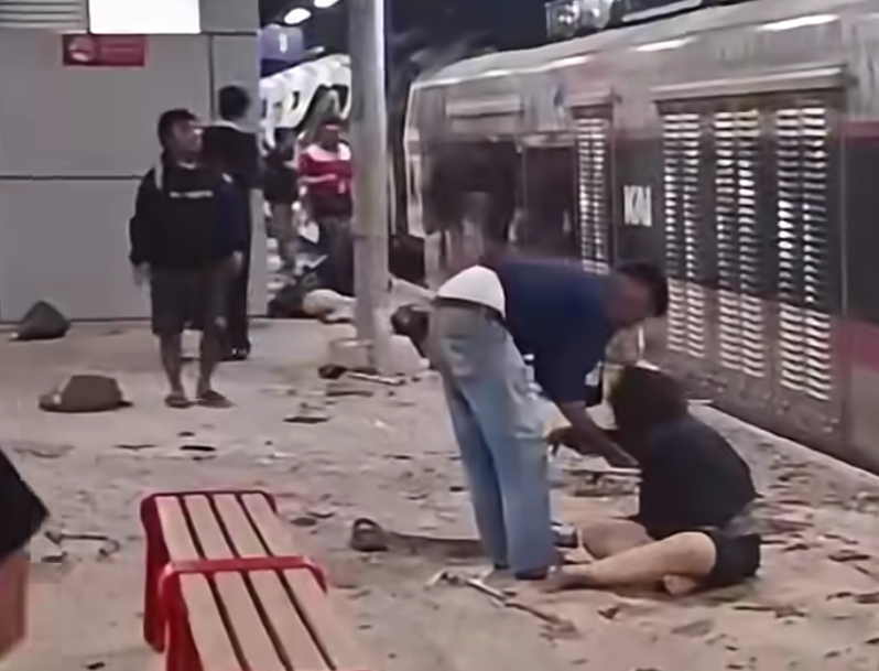 Dari video yang beredar di media sosial, tampak sejumlah petugas berjibaku melakukan proses penyelamatan dan pengamanan area sekitar jalur rel.